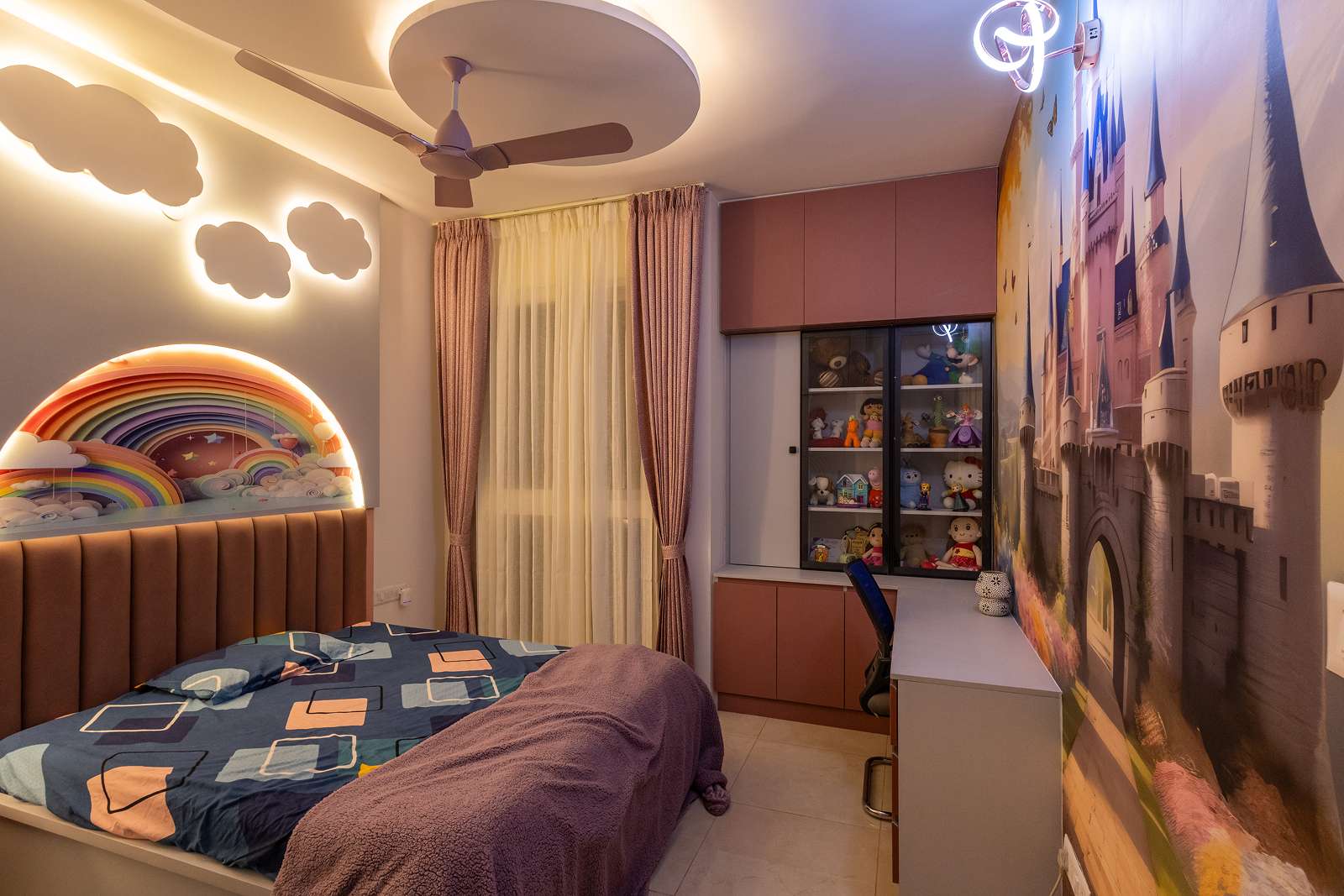 Spaces were planned to evolve — playful zones, open layouts, and hidden storage. A cheerful kids’ room adds imagination while staying easy to maintain.